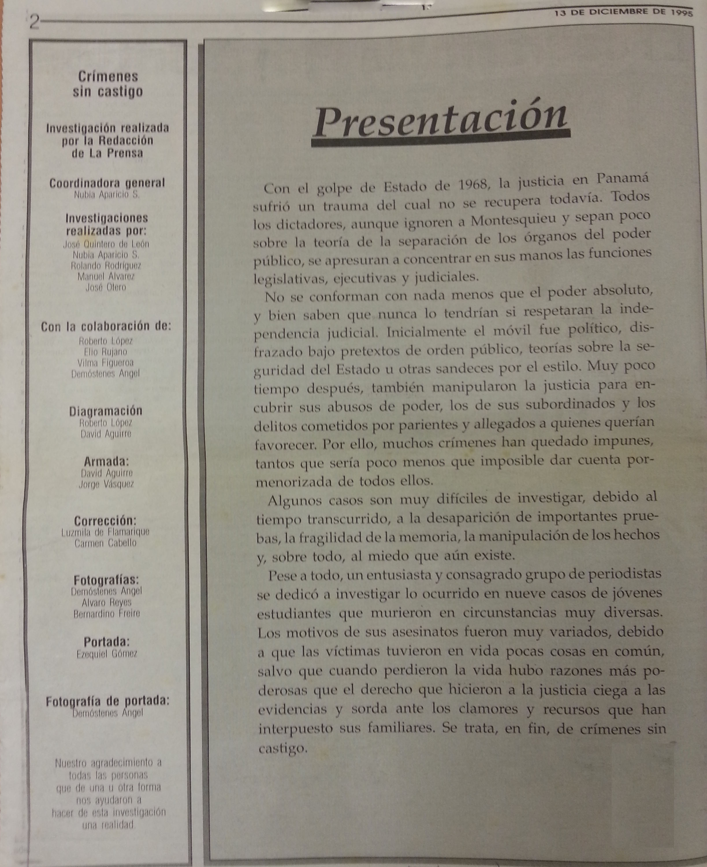 Crímenes sin castigo, investigación realizada por la Redacción del Diario La Prensa.